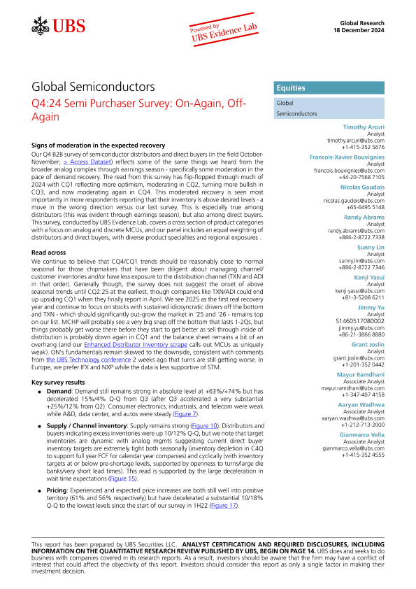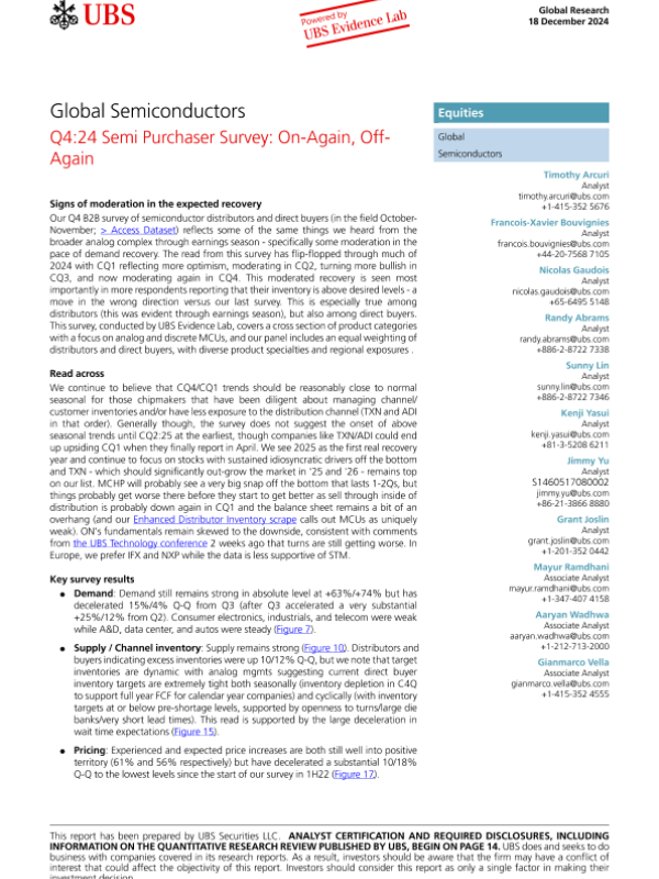 【UBS Securities LLC】【20241218】Q4 24 Semi Purchaser Survey On-Again, Off-Again-23页