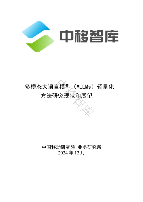 【中移智库】【202412】2024年多模态大模型(MLLMs)轻量化方法研究现状和展望报告-14页