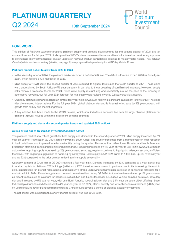 【世界铂金投资协会】【202409】世界铂金投资协会-2024年第二季度白金季度-27页