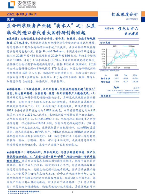 医药行业 生命科学 科研创新 进口替代 生物试剂