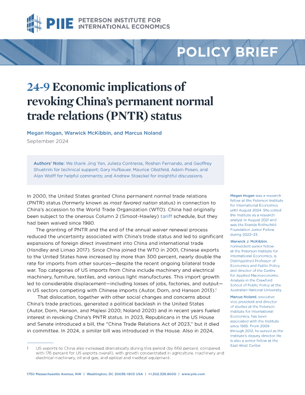 【彼得森经济研究所】【202409】撤销中国永久正常贸易关系(PNTR)地位的经济影响-17页
