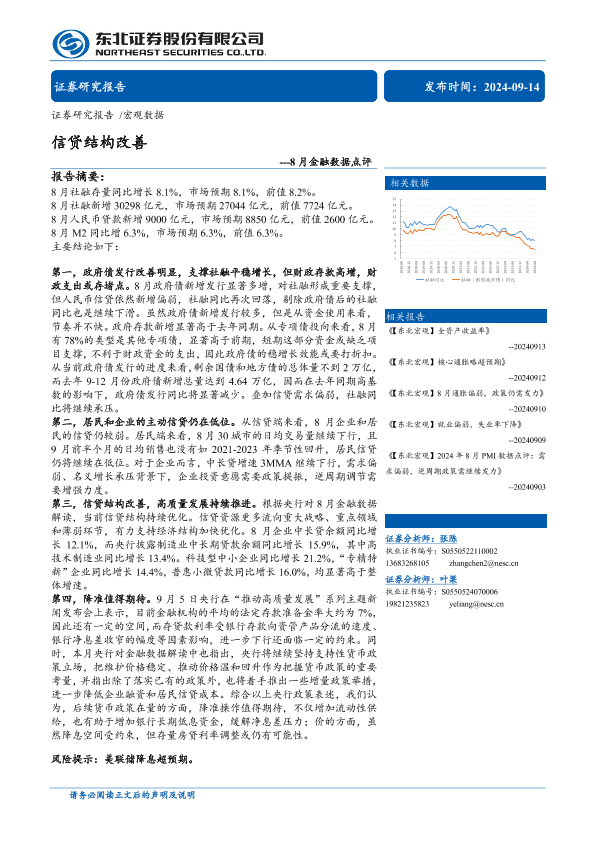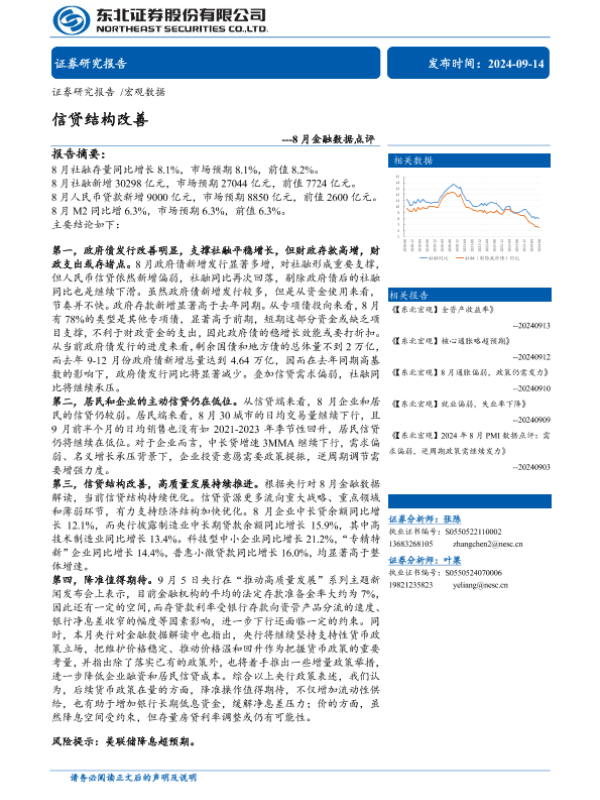 【东北证券】【20240914】8月金融数据点评:信贷结构改善-11页
