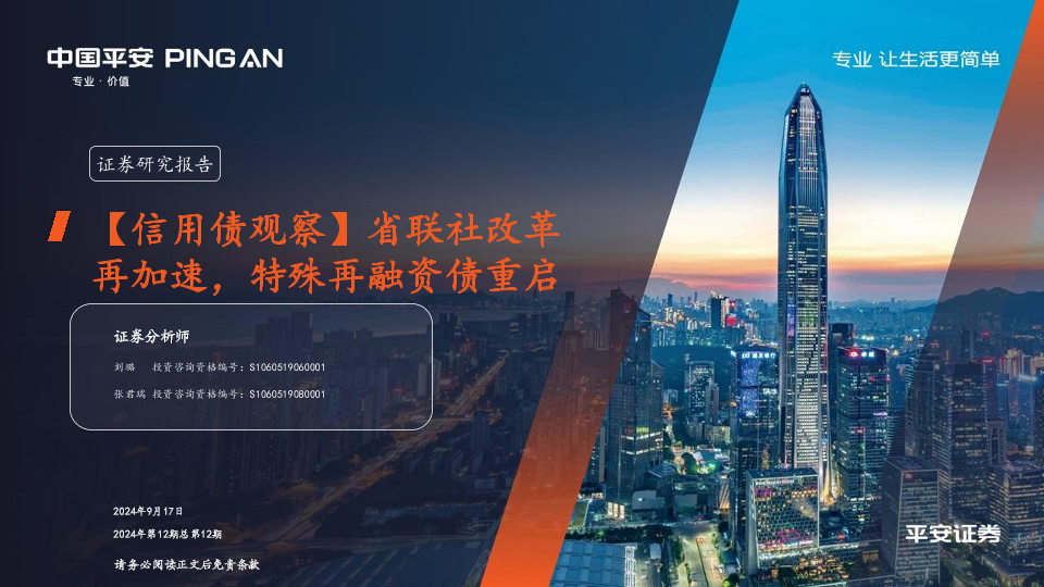 【平安证券】【20240917】信用债观察:省联社改革再加速,特殊再融资债重启-10页
