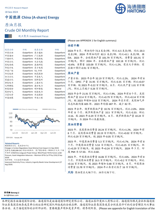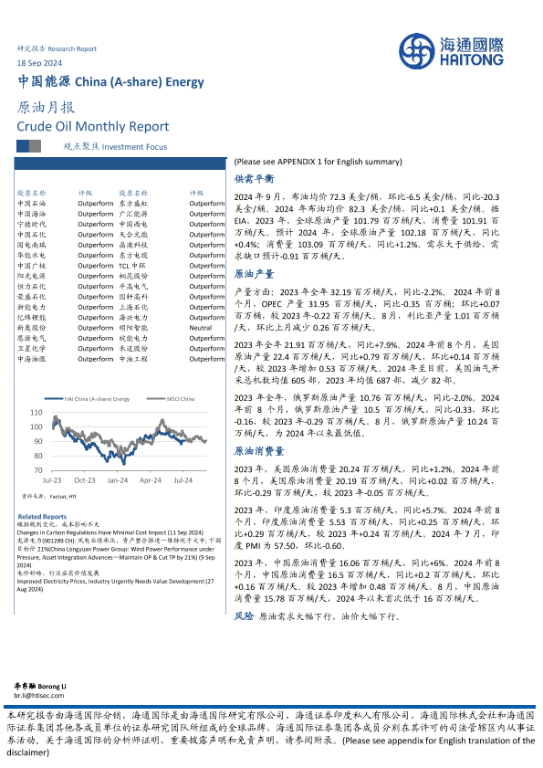 【海通国际】【20240918】中国能源行业:原油月报-15页