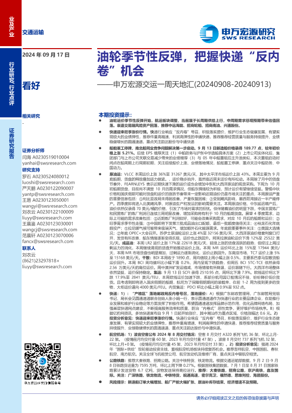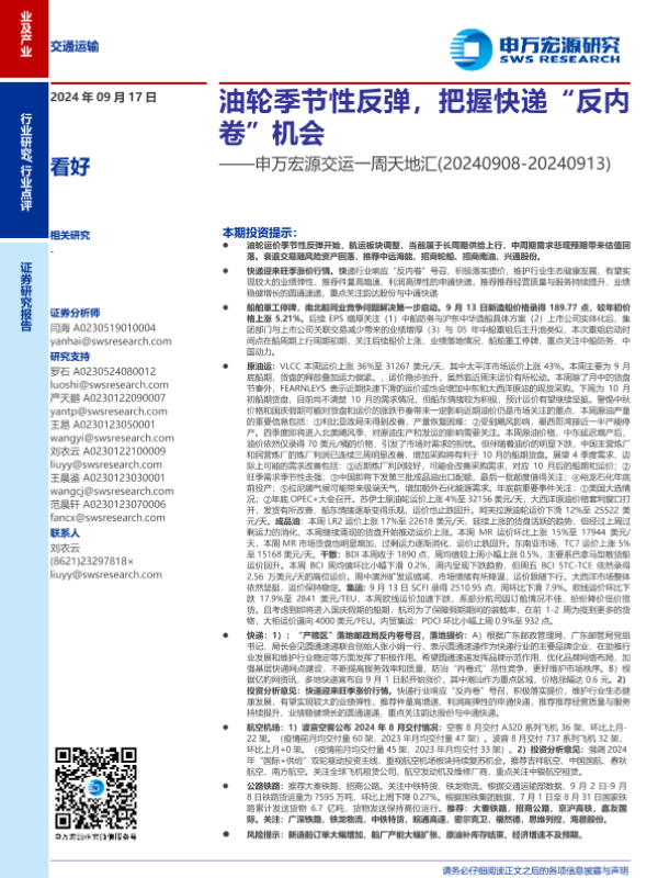 【申万宏源】【20240917】交运行业一周天地汇:油轮季节性反弹,把握快递“反内卷”机会-16页
