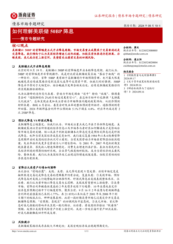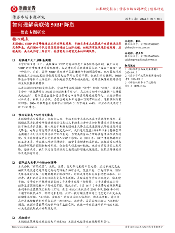 【浙商证券】【20240919】债市专题研究:如何理解美联储50BP降息-11页