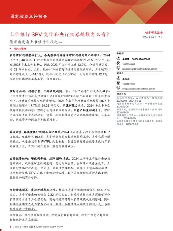 【西部证券】【20240917】债市角度看上市银行中报之二:上市银行SPV变化和央行借券规模怎么看?-12页