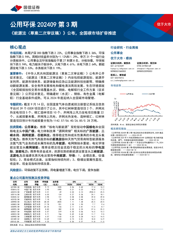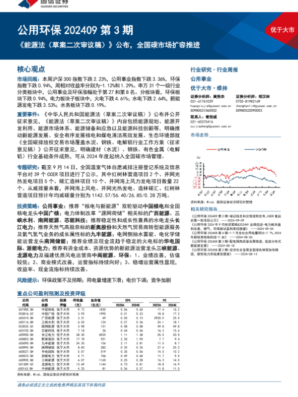 【国信证券】【20240917】公用环保行业202409第3期:《能源法(草案二次审议稿)》公布,全国碳市场扩容推进-28页