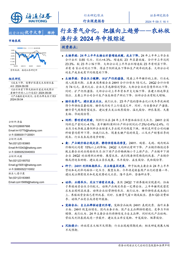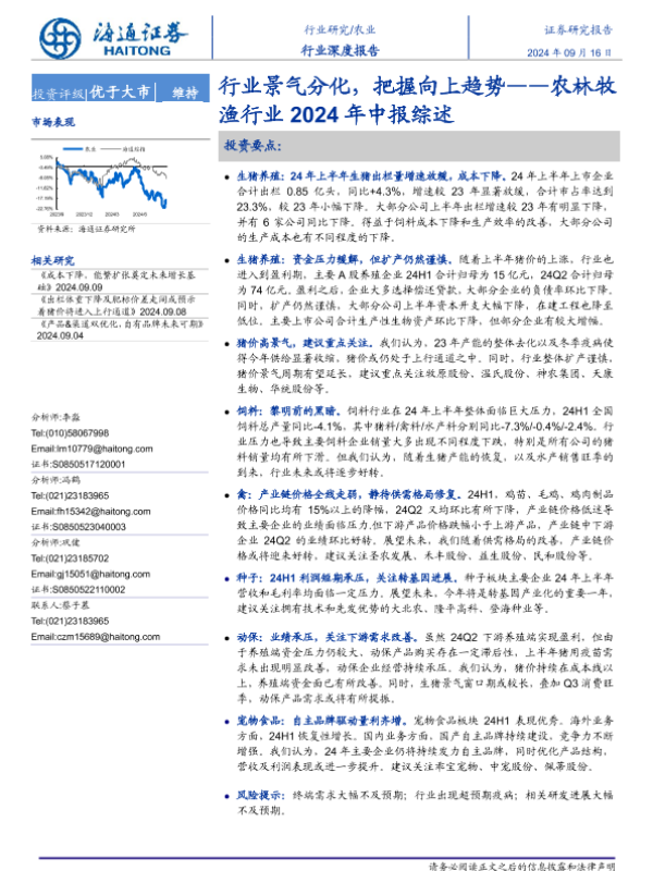 【海通证券】【20240916】农林牧渔行业2024年中报综述:行业景气分化,把握向上趋势-16页