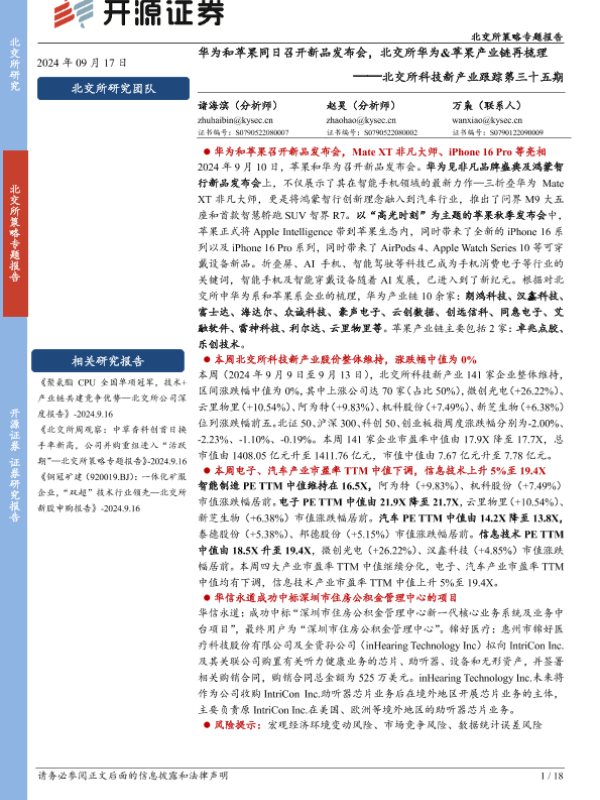 【开源证券】【20240917】北交所科技新产业跟踪第三十五期:华为和苹果同日召开新品发布会,北交所华为&苹果产业链再梳理-18页