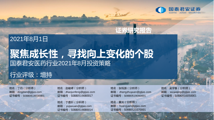 【国泰君安证券】【20210802】医药行业2021年8月投资策略:聚焦成长性,寻找向上变化的个股-29页