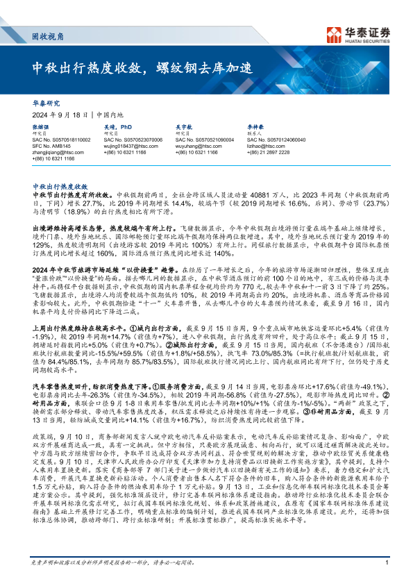 【华泰证券】【20240918】固收视角:中秋出行热度收敛,螺纹钢去库加速-13页