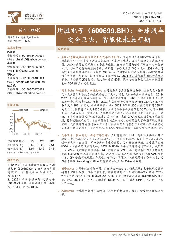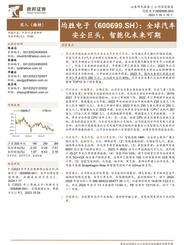 【德邦证券】【20240918】均胜电子(600699)全球汽车安全巨头,智能化未来可期-27页