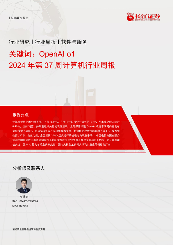 【长江证券】【20240918】媒体行业AI系列跟踪(56):OpenAI+o1推动AI技术边界,国内AI应用场景持续拓展-16页