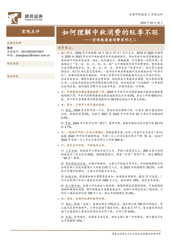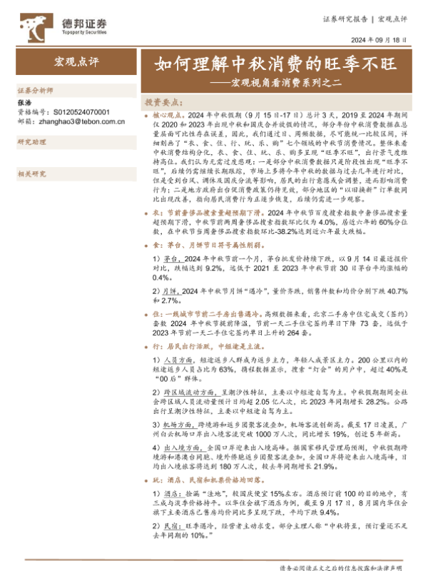 【德邦证券】【20240918】宏观视角看消费系列之二:如何理解中秋消费的旺季不旺-13页