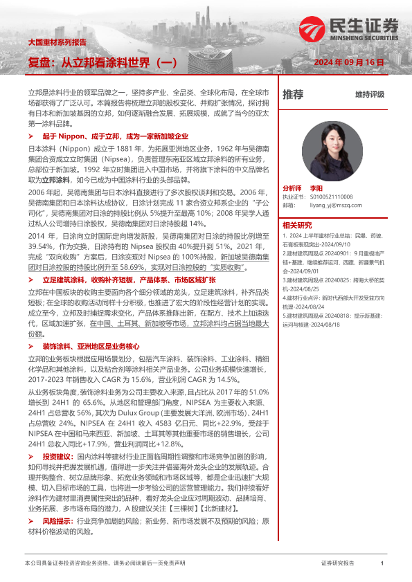 【民生证券】【20240916】建材行业大国重材系列报告:复盘,从立邦看涂料世界(一)-19页