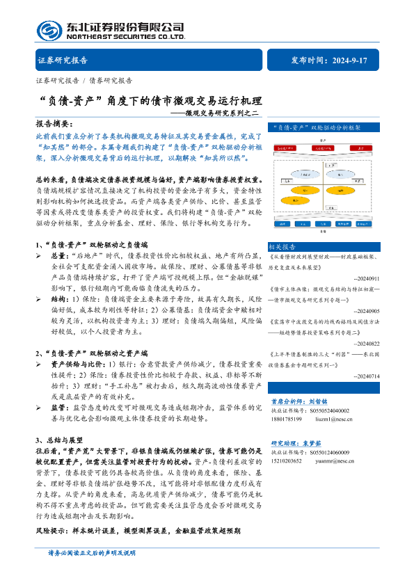 【东北证券】【20240917】微观交易研究系列之二:“负债-资产”角度下的债市微观交易运行机理-27页