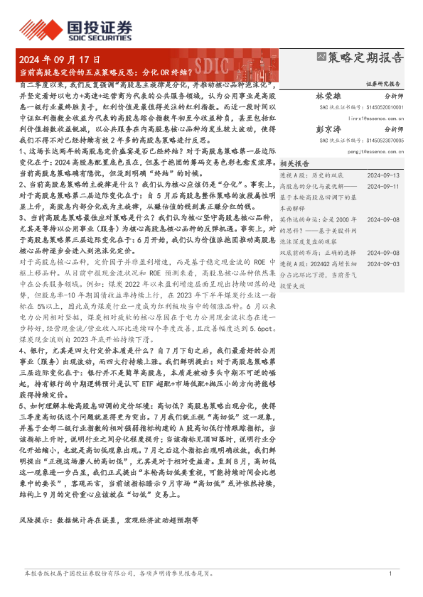 【国投证券】【20240917】当前高股息定价的五点策略反思:分化OR终结?-10页