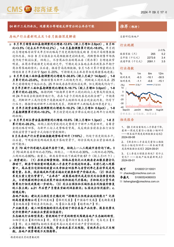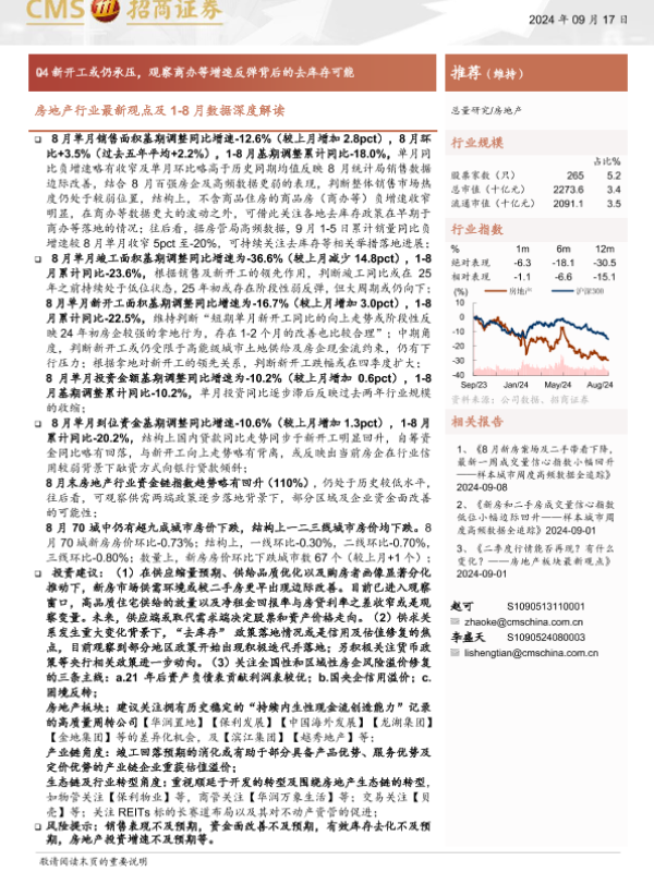 【海通证券】【20240917】房地产行业最新观点及1-8月数据深度解读:Q4新开工或仍承压,观察商办等增速反弹背后的去库存可能-19页