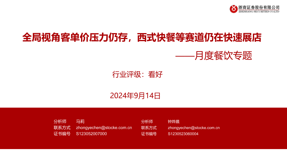 【浙商证券】【20240914】月度餐饮行业专题:全局视角客单价压力仍存,西式快餐等赛道仍在快速展店-10页