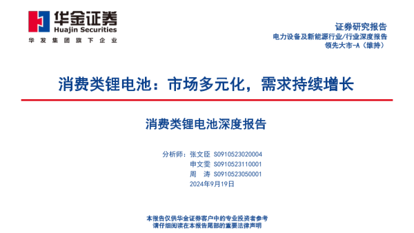 【华金证券】【20240919】电力设备及新能源行业深度报告:消费类锂电池,市场多元化,需求持续增长-55页