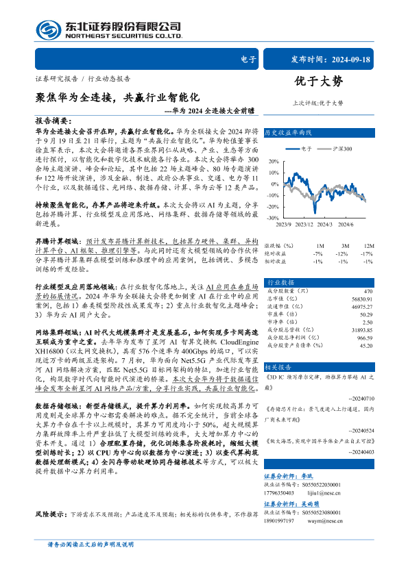 【东北证券】【20240918】电子行业华为2024全连接大会前瞻:聚焦华为全连接,共赢行业智能化-15页