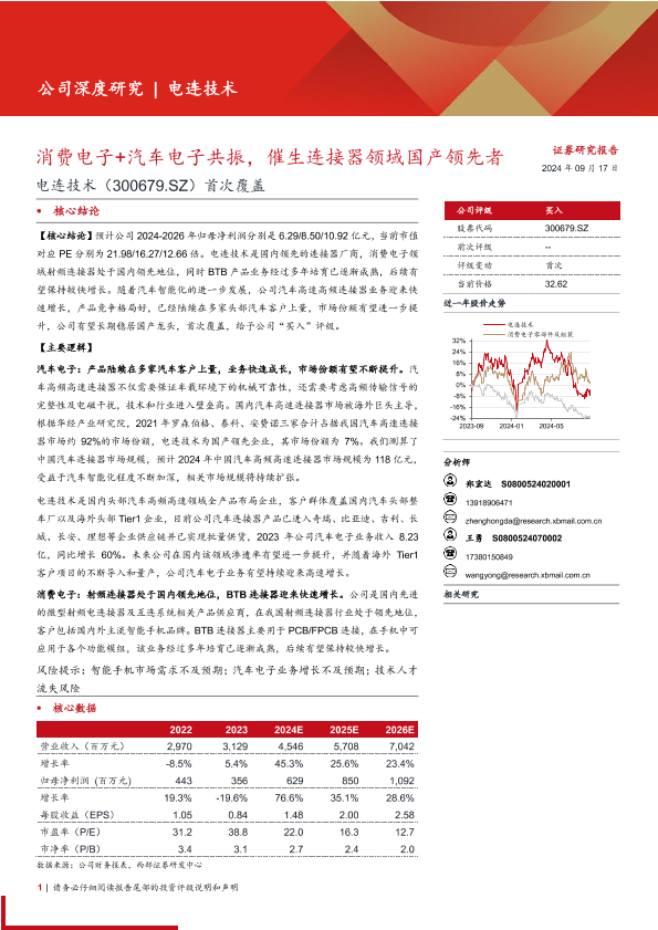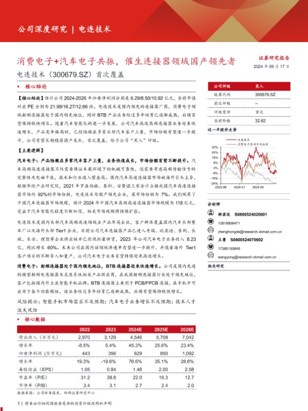 【西部证券】【20240917】电连技术(300679)首次覆盖:消费电子+汽车电子共振,催生连接器领域国产领先者-27页