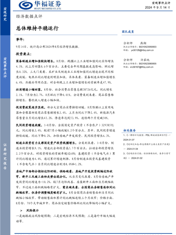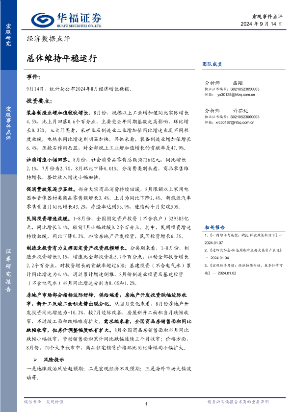 【华福证券】【20240914】经济数据点评:总体维持平稳运行-10页
