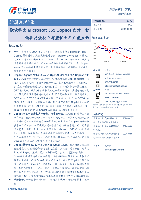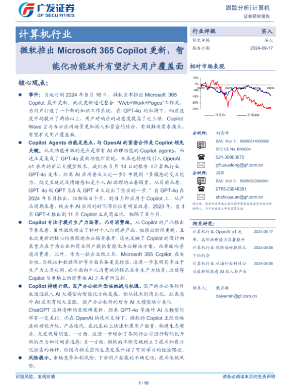 【广发证券】【20240917】计算机行业:微软推出Microsoft 365 Copilot更新,智能化功能跃升有望扩大用户覆盖面-10页