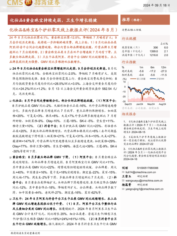 【海通证券】【20240918】行业化妆品&珠宝&个护社零及线上数据点评(2024年8月)-23页