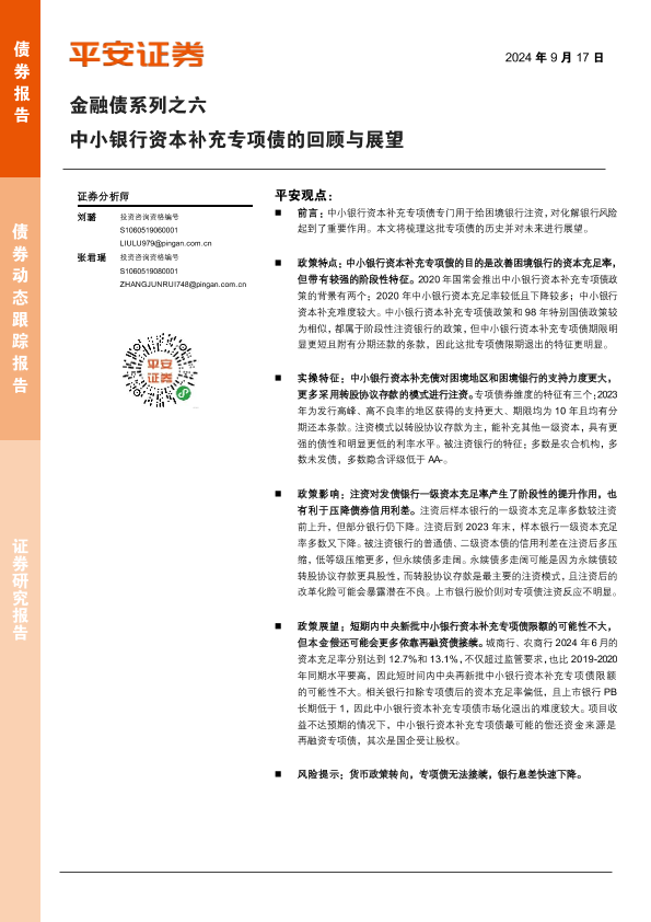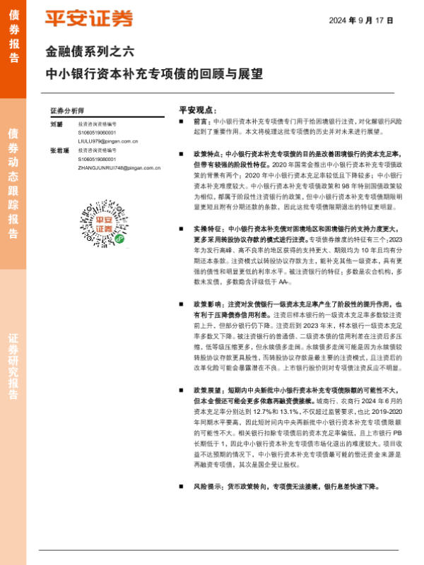 【平安证券】【20240917】金融债系列之六:中小银行资本补充专项债的回顾与展望-10页