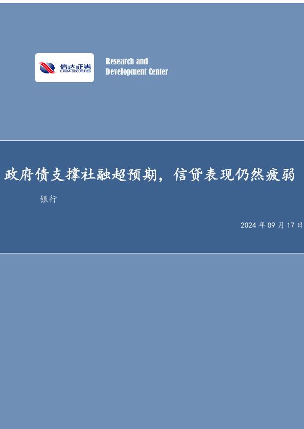 【信达证券】【20240917】政府债支撑社融超预期,信贷表现仍然疲弱-11页