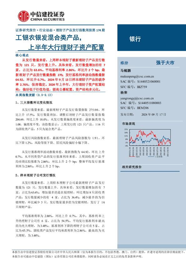 【中信建投证券】【20240917】银行业理财子产品发行指数周报第174期:工银农银发混合类产品,上半年大行理财子资产配置-21页