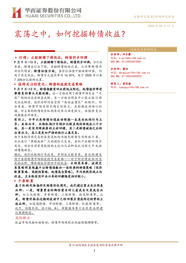 【华西证券】【20240917】震荡之中,如何挖掘转债收益?-22页