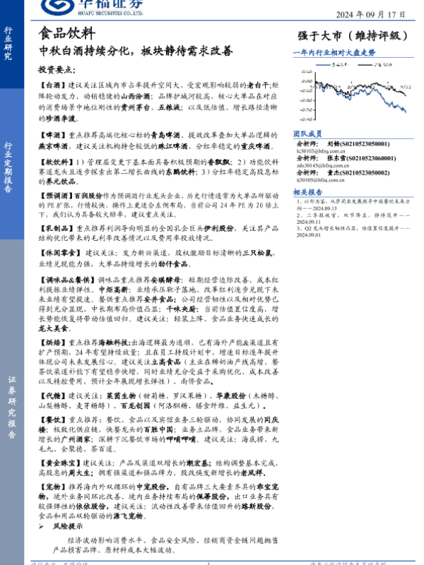 【华福证券】【20240917】食品饮料行业定期报告:中秋白酒持续分化,板块静待需求改善-12页