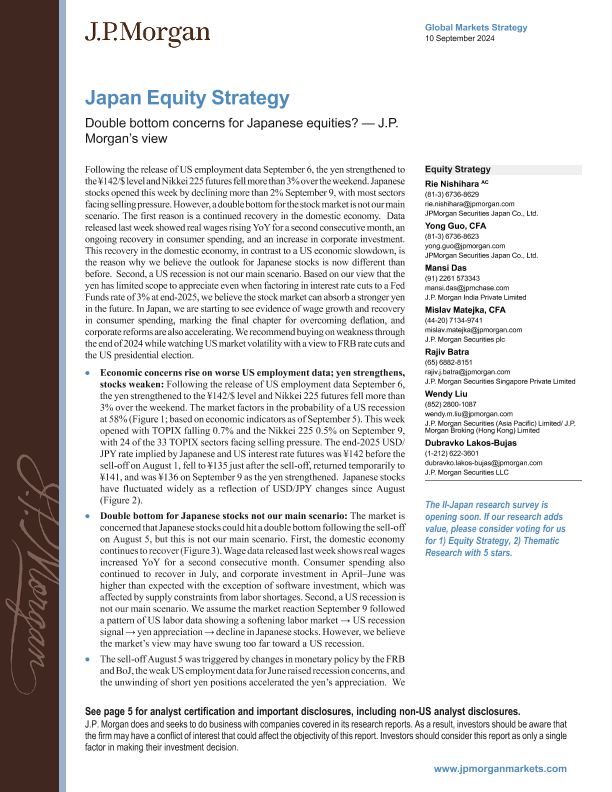 【J.P. Morgan】【20240910】an-Japan Equity Strategy Double bottom concerns for Japanese equities-9页