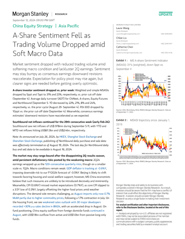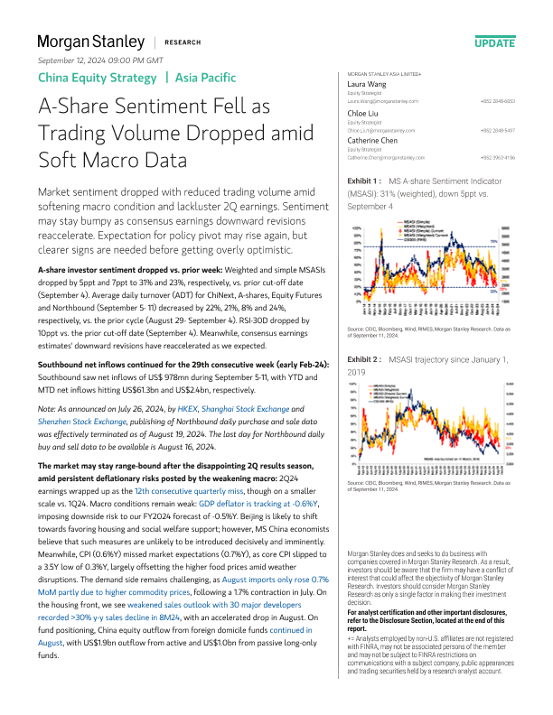 【Morgan Stanley】【202409】A-Share Sentiment Fell as Trading Volume Dropped amid Soft Macro Data-11页
