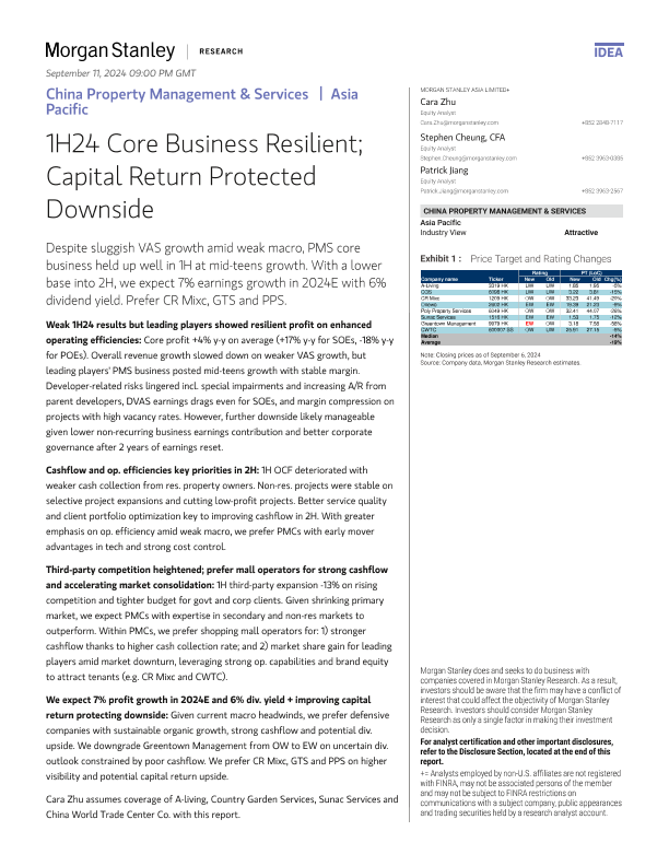 【Morgan Stanley】【2024】nley-China Property Management Services 1H24 Core Business Resilient; Capital Return Protected Downside-56页