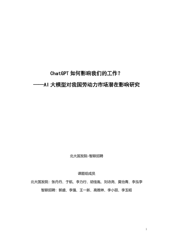 【北大国发院–智联招聘】【2023】ChatGPT如何影响我们的工作?——AI大模型对我国劳动力市场潜在影响研究-16页