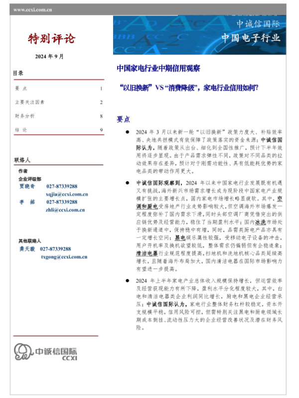 【中诚信国际】【202409】中国家电行业中期信用观察-11页