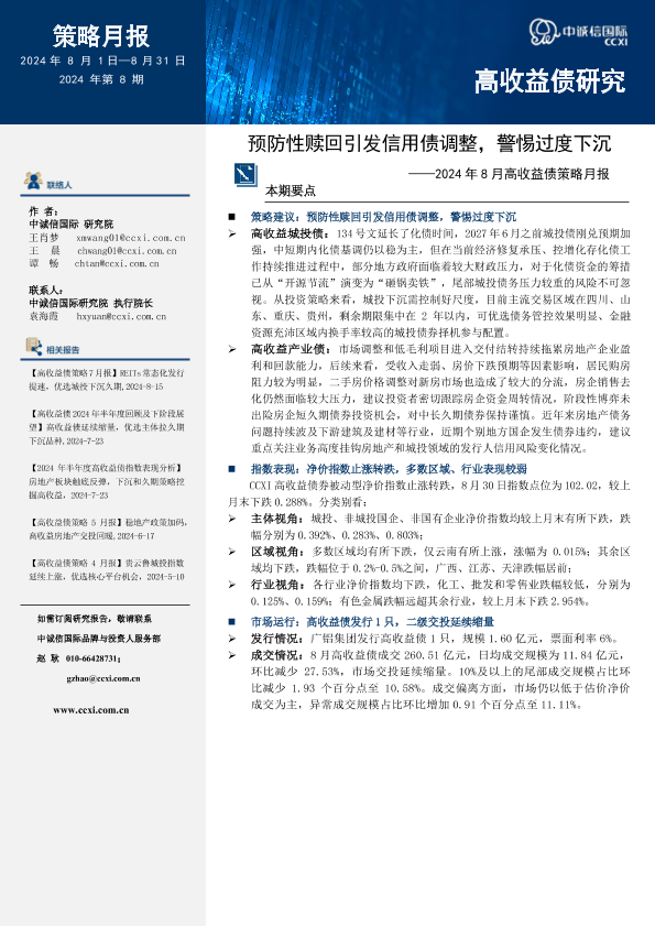 【中诚信国际】【202408】预防性赎回引发信用债调整,警惕过度下沉-12页