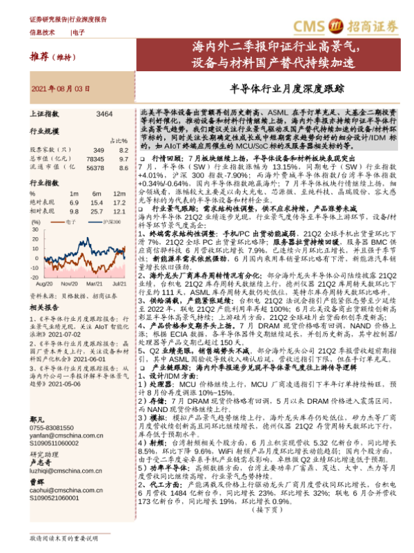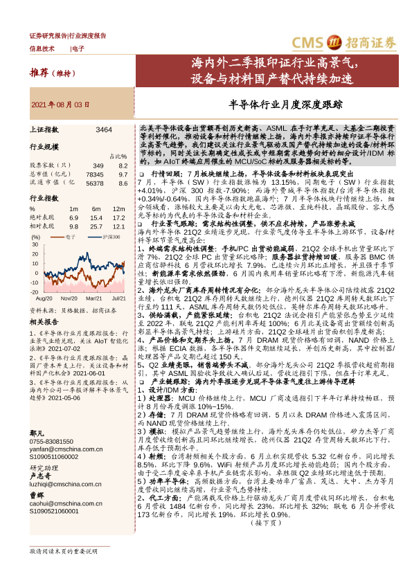 【海通证券】【20210803】半导体行业月度深度跟踪:海内外二季报印证行业高景气,设备与材料国产替代持续加速-60页