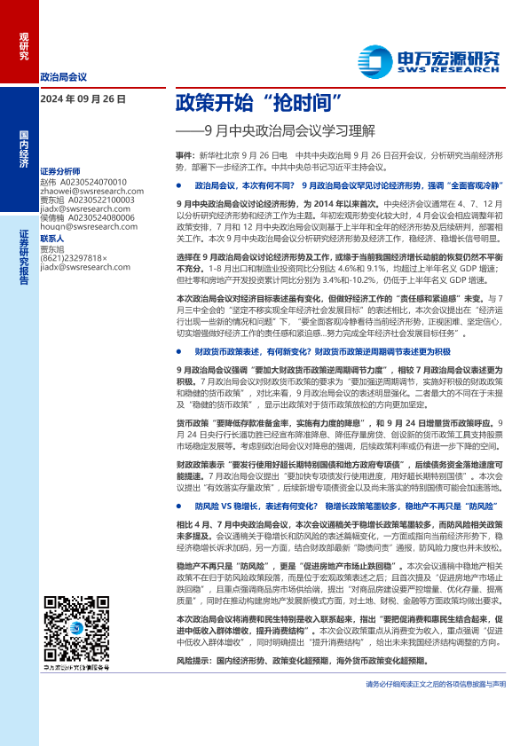 【申万宏源】【20240926】9月中央政治局会议学习理解:政策开始“抢时间”-12页