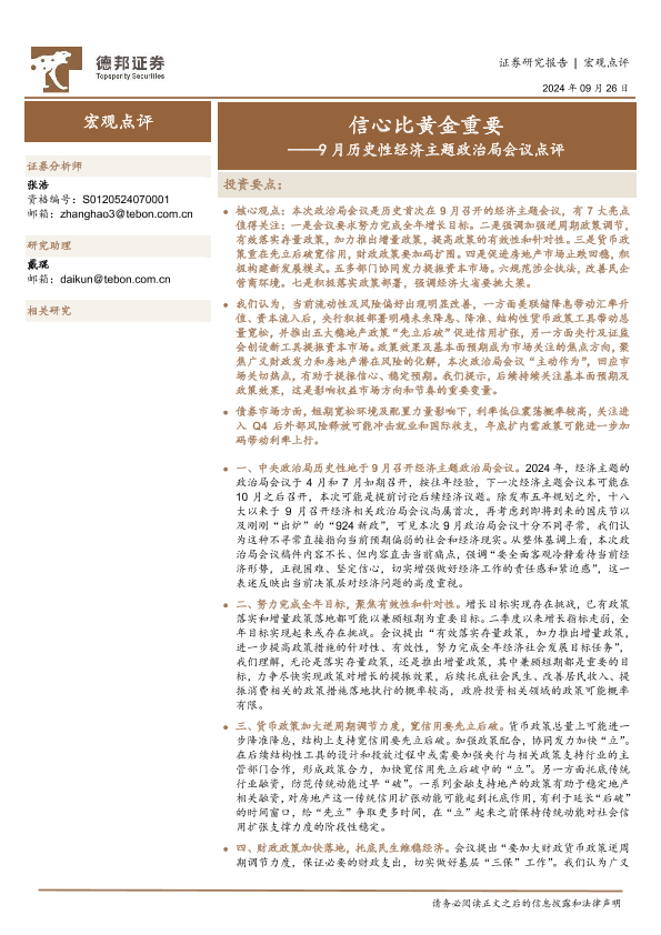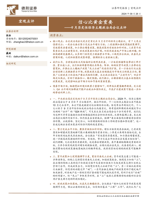 【德邦证券】【20240926】9月历史性经济主题政治局会议点评:信心比黄金重要-14页