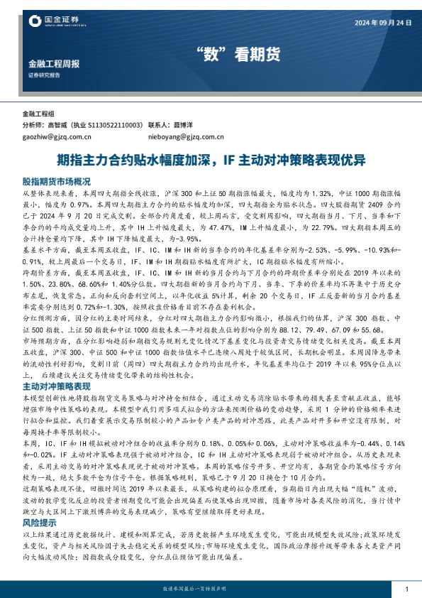 【国金证券】【20240924】“数”看期货:期指主力合约贴水幅度加深,IF主动对冲策略表现优异-12页
