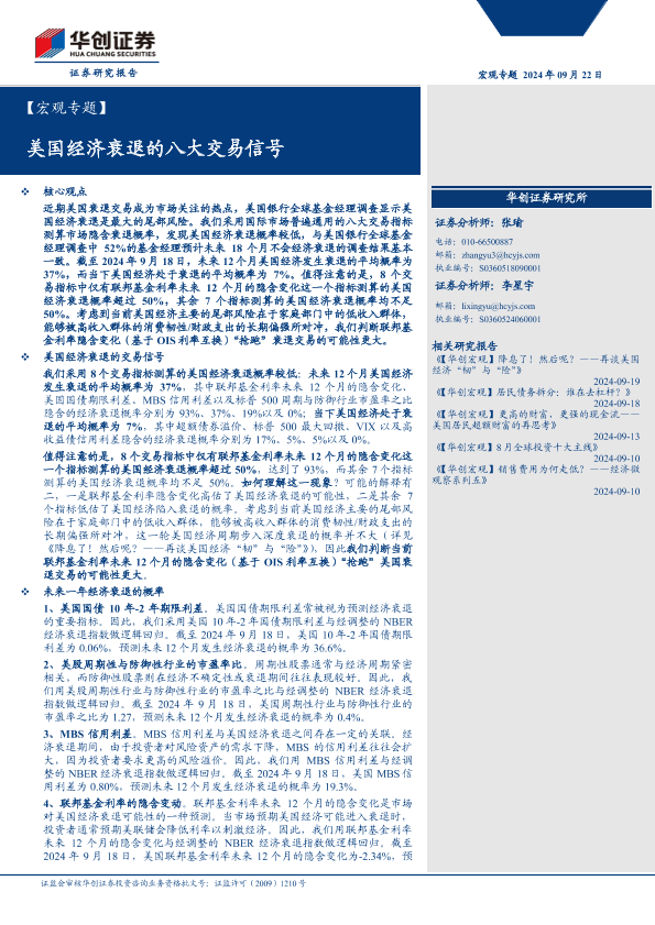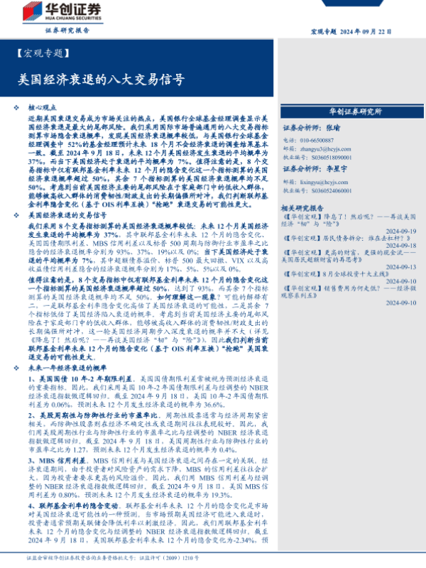 【华创证券】【20240922】美国经济衰退的八大交易信号-14页