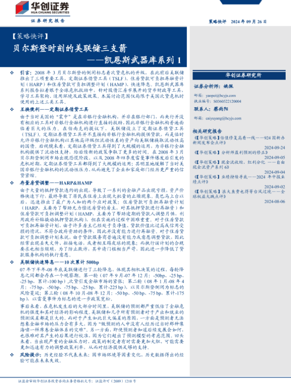 【华创证券】【20240926】【策略快评】凯恩斯武器库系列1:贝尔斯登时刻的美联储三支箭-13页