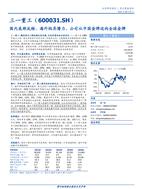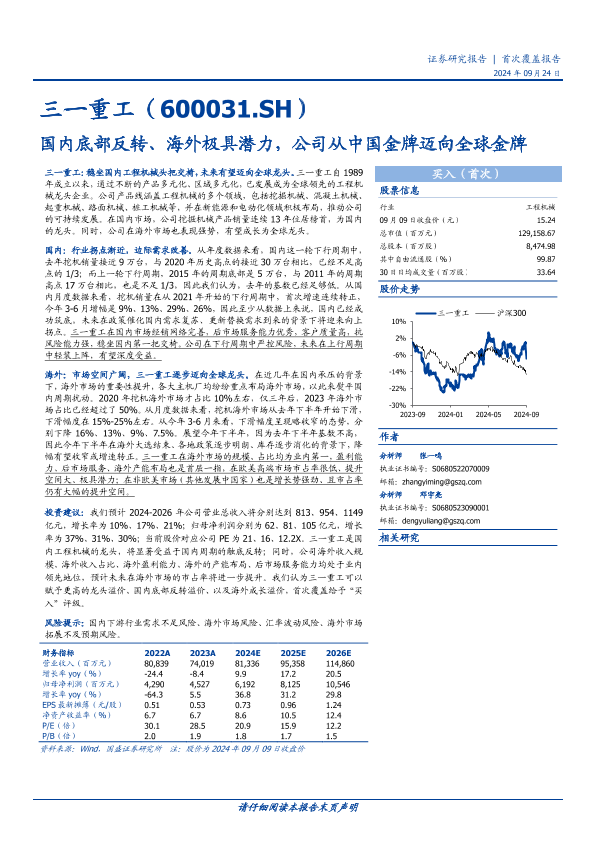 【国盛证券】【20240924】三一重工(600031)国内底部反转、海外极具潜力,公司从中国金牌迈向全球金牌-52页