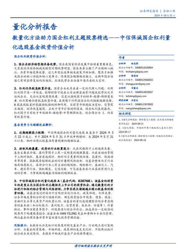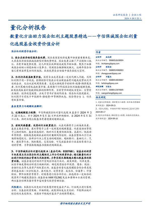 【国盛证券】【20240925】中信保诚国企红利量化选股基金投资价值分析:数量化方法助力国企红利主题股票精选-14页