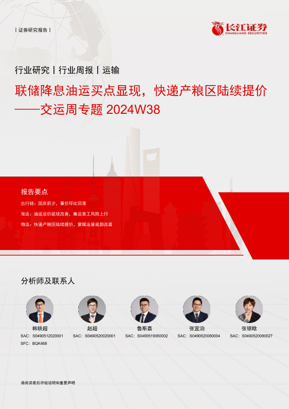 【长江证券】【20240923】交运行业周专题2024W38:联储降息油运买点显现,快递产粮区陆续提价-16页